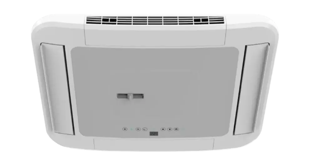 La carcasa de polipropileno hace que este aire acondicionado sea mucho menos pesado. Además, el aire acondicionado de techo tiene un tamaño compacto. Esto deja suficiente espacio en el techo para colocar un panel solar o un cofre de techo.