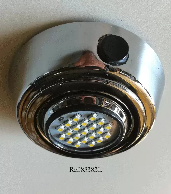 Aplique metálico con acabado cromado y lampara led orientable.