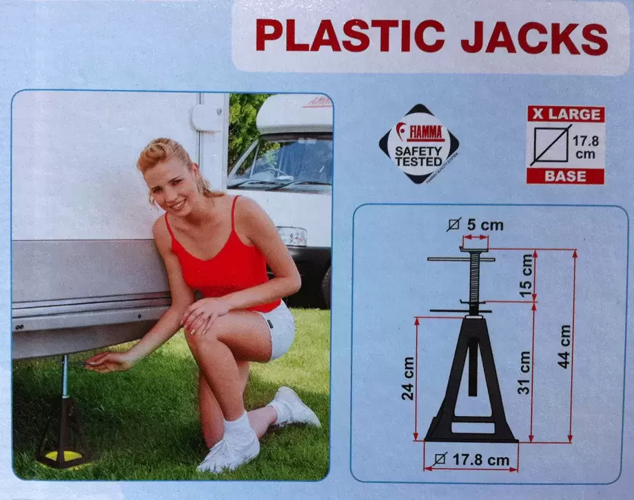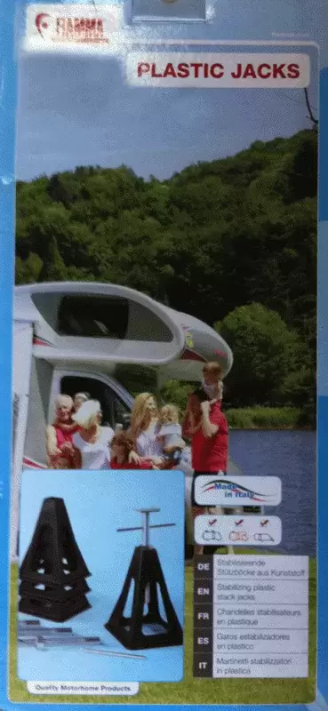 Fabricado en plastico color negro , adecuado tanto para estabilizar caravana como para aliviar peso de la suspensión de autocaravana.