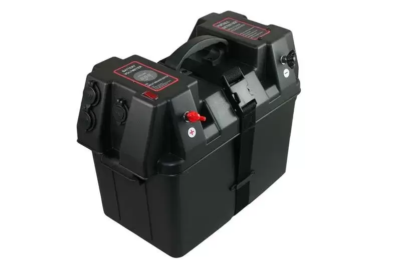 Caja de batería equipada y premontada con accesorios externos para camper, 4x4 overland y camping caravaning.