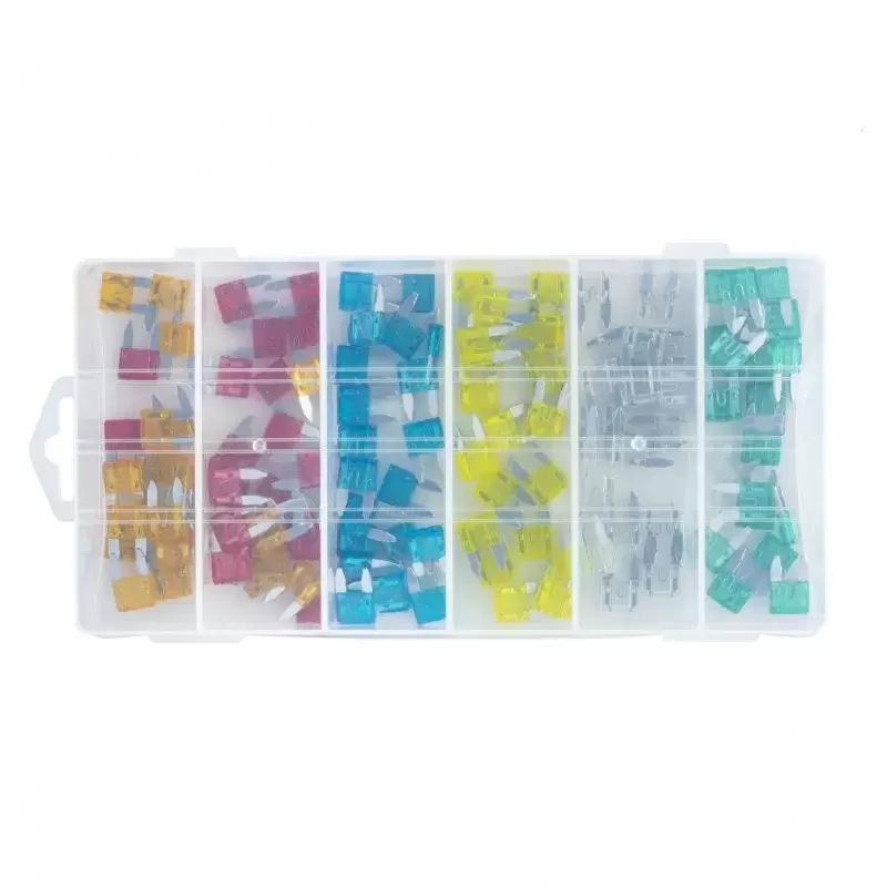 Caja surtida de 120 fusibles MINI para vehículos, autocaravanas, camper y 4x4 overland.