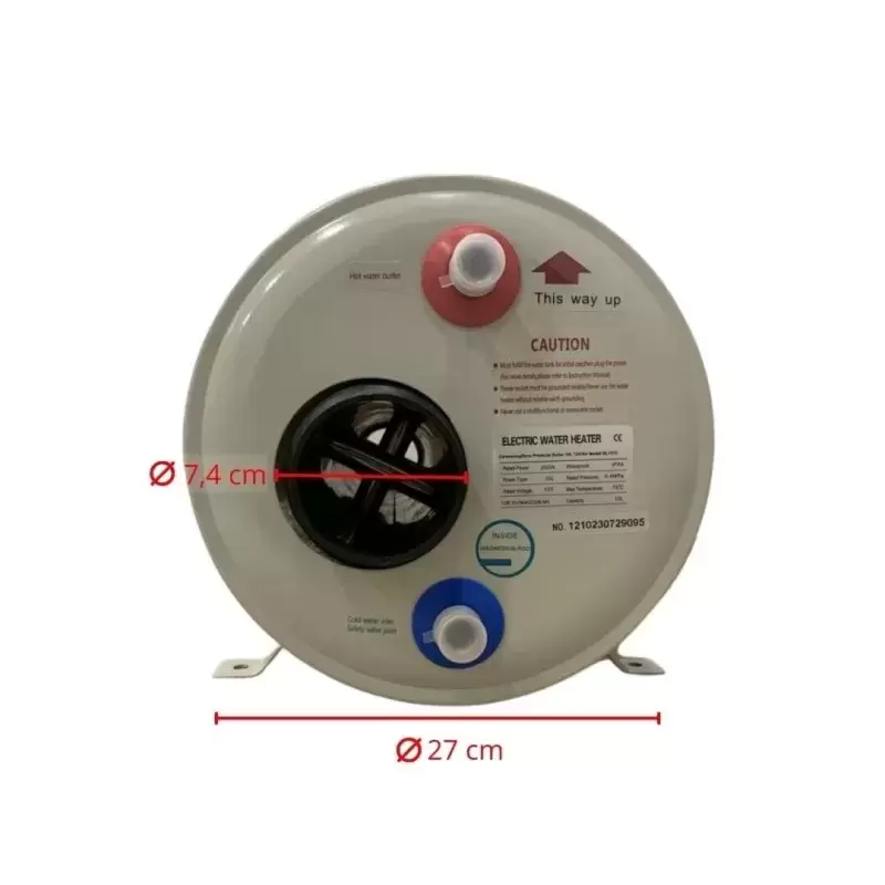 Calentador Boiler de agua caliente 10 litros a 12V/200W + AIRE para caravanas, autocaravanas, camper y 4x4 overland.