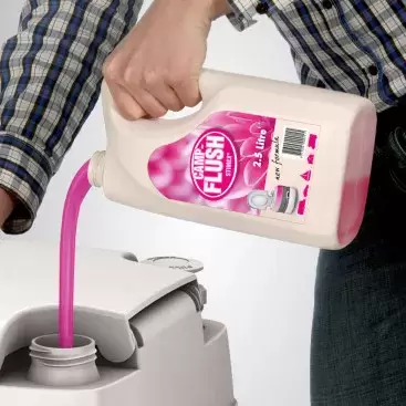 STIMEX® CAMP FLUSH ayuda a prevenir las incrustaciones y deja una capa protectora en el inodoro químico, para que las heces se adhieran al inodoro con menos facilidad, lo que aumenta la higiene.