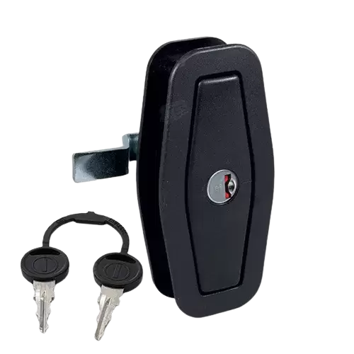 Cerradura exterior negra de arcones, puertas de caravanas, autocaravanas y camper.