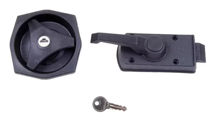 Cerradura de puerta de caravana negra espesor de pared de 25-35 mm.