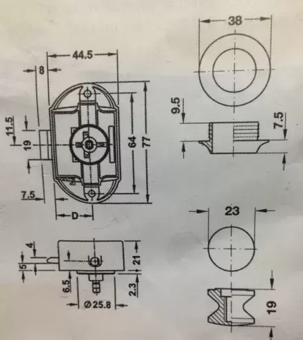 Cierre pulsador con roseta y mecanismo en color gris plata satinado, medidas en foto adjunta.