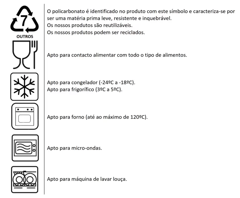 Apto para congelador y frigorífico, para horno (hasta120ºC), para lavavajillas y microondas.
