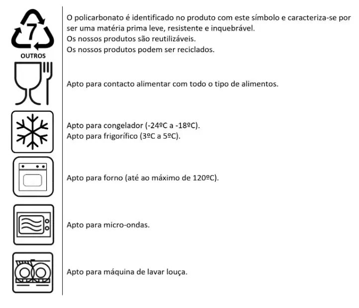 Apto para congelador y frigorífico, para horno (hasta120ºC), para lavavajillas y microondas.