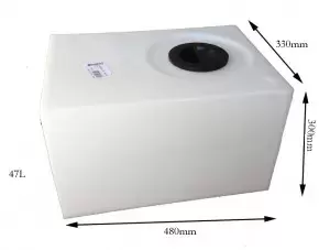 Resistente depósito de polietileno con capacidad para 47 litros de agua.
