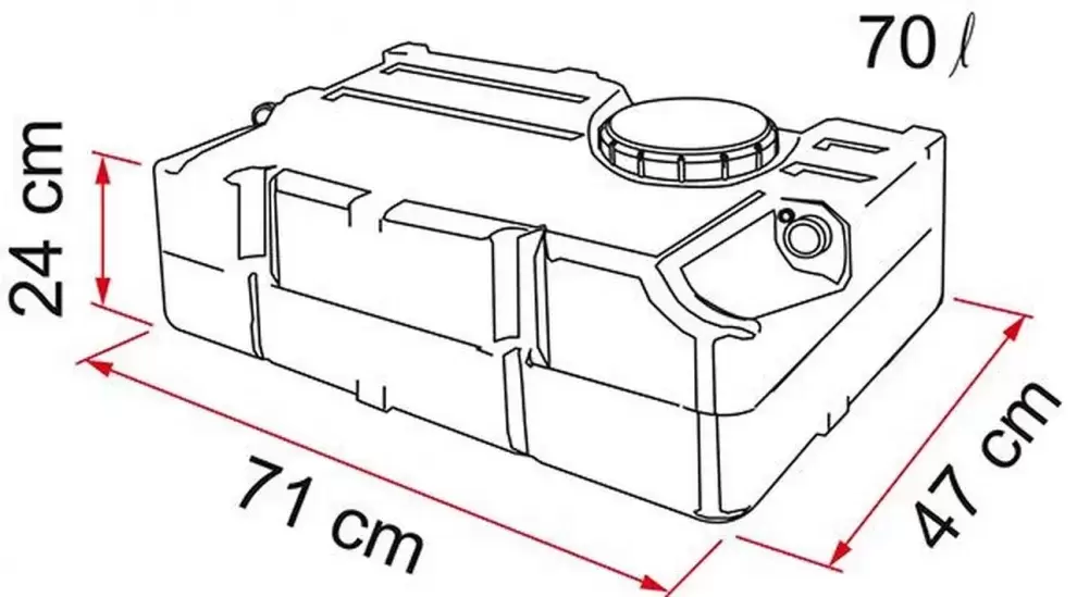 Deposito auxiliar de 70 litros 71x47x24 cm para caravanas, autocaravanas y camper.