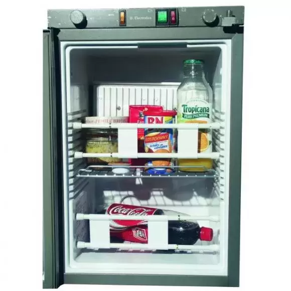Doble barra de sujección extensible de 40 hasta 71cm. para sujetar los productos que transportamos tanto en el frigorífico com en los distintos muebles de nuestra caravana ó autocaravana.