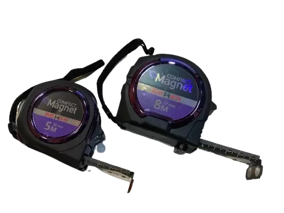 Cinta métrica anti cortes con punta magnética bloqueo y freno.
