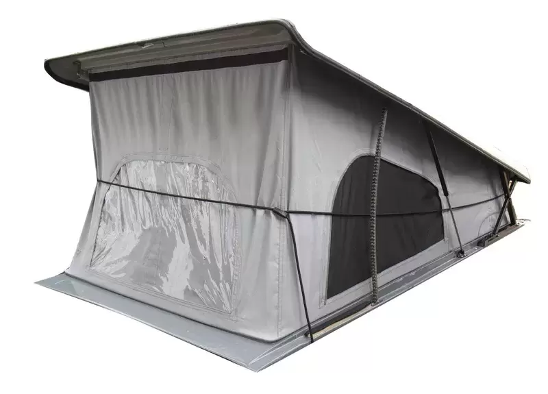 Gracias a esta práctica banda de goma, los fuelles de la tienda del techo para dormir se pliegan perfectamente.