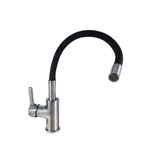 Este particular grifo mezclador está equipado con un caño giratorio y flexible, hecho de PVC con un núcleo de metal que le permite adoptar cualquier forma y posición y mantenerla.