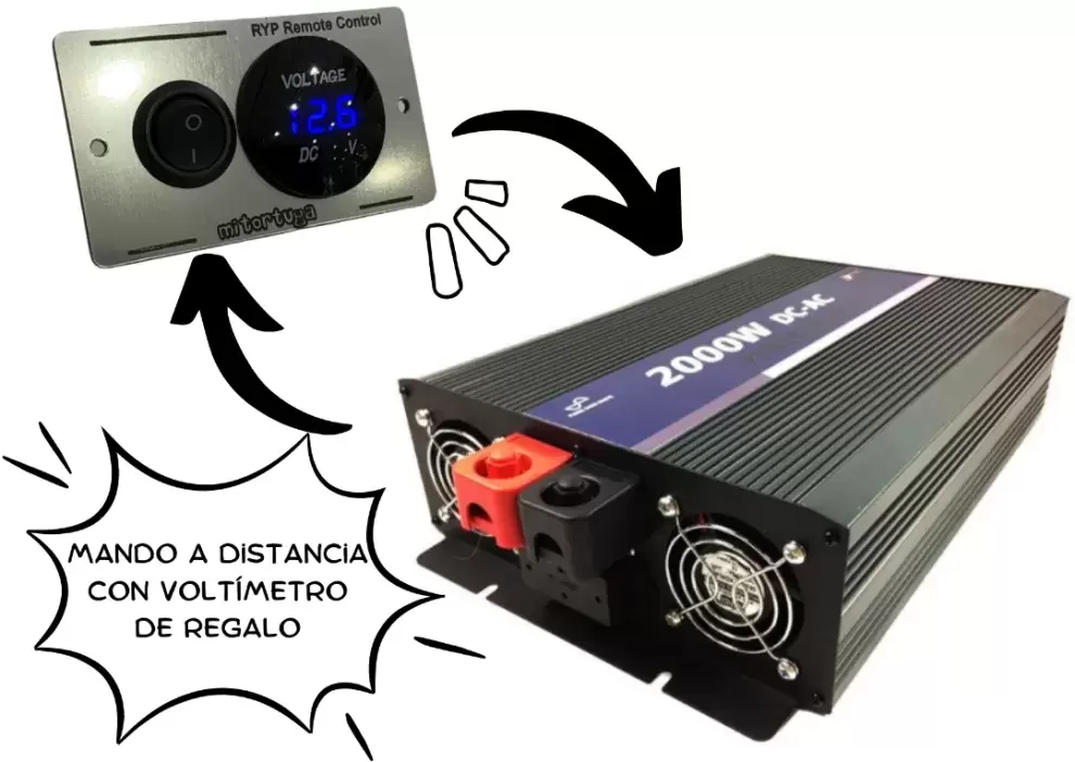 Inversor de corriente Onda Pura 2000W, 230V, 12V para caravanas, autocaravanas, camper y 4x4 overland.