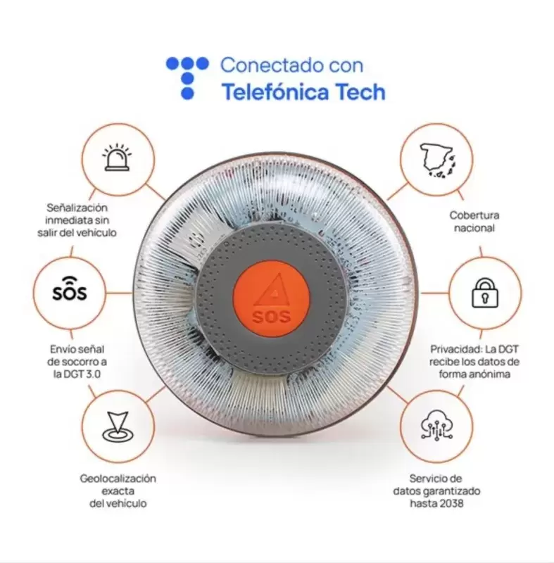 Deberemos llevarla en la guantera de nuestro vehículo y, en caso de avería o accidente, podremos activarla en cuestión de segundos, colocándola preferiblemente en el techo del vehículo. En ese momento, además de emitir la señal luminosa de advertencia, se conectará a la plataforma DGT 3.0 para transmitir su ubicación en tiempo real y avisar a otros usuarios de la vía de la situación.