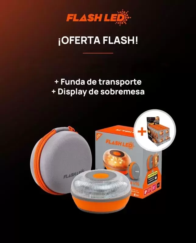 Luz de emergencia Geolocalizable Flash Led V16 con conectividad incluida hasta 2038 + funda protectora de REGALO.