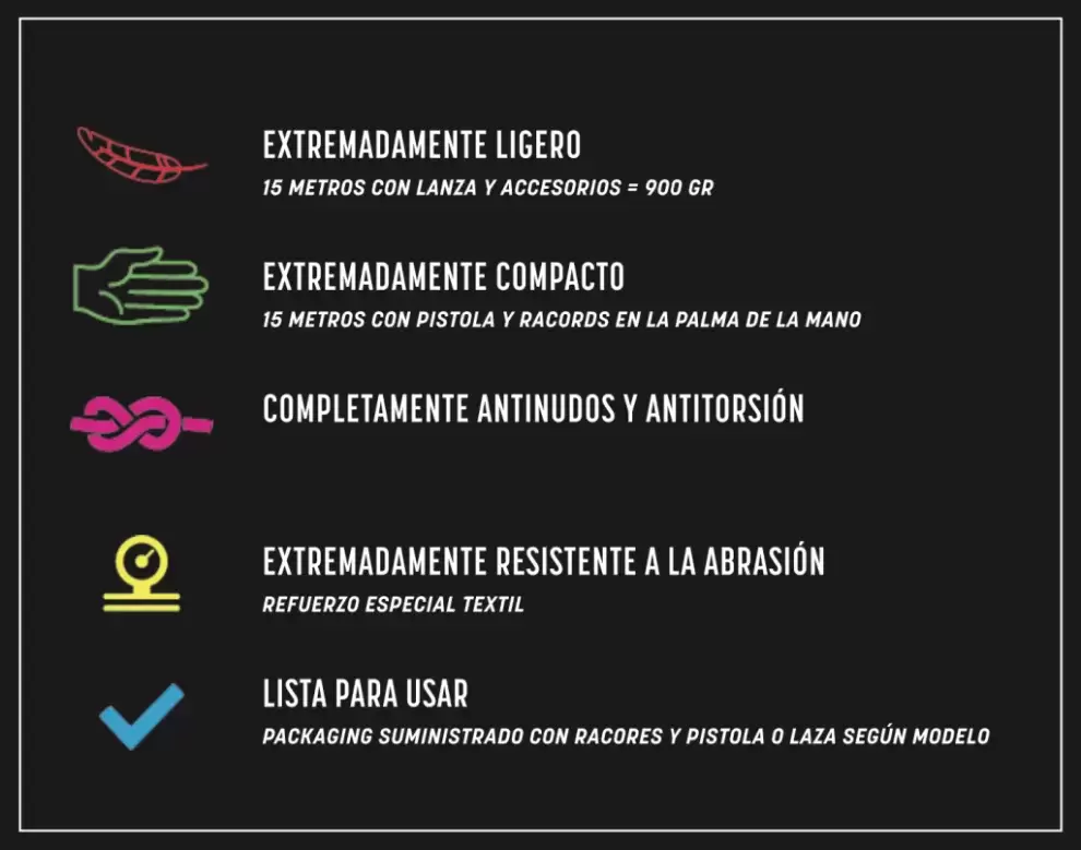 23 metros con lanza y accesorios = 900 GR