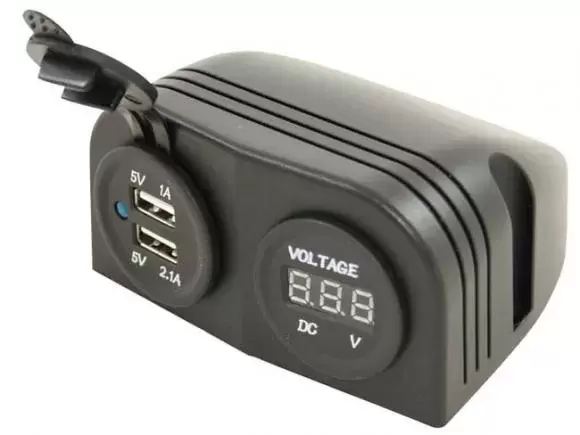 2 USB 1 Amp tomada. y 2,1 Amp. Voltímetro con indicador digital.