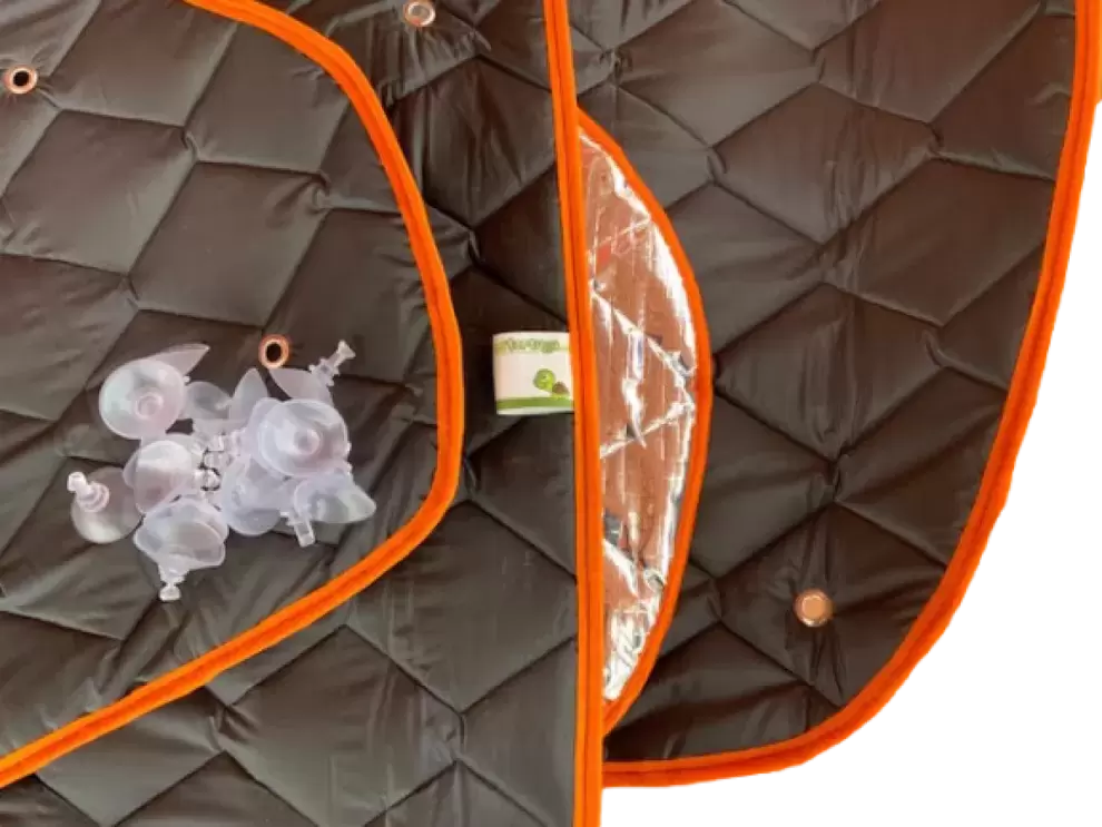 NUEVO MODELO KIT 230 oscurecedor y aislante termico interior Fiat Ducato para autocaravanas y camper con chasis 230. - Ref. 803FD-BLACK/ORANGE