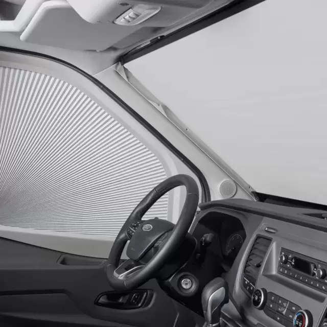Este ligero sistema de oscurecimiento de ventanillas laterales fue hecho a medida para los modelos Ford Transit V363 Facelift presentados en julio de 2019.