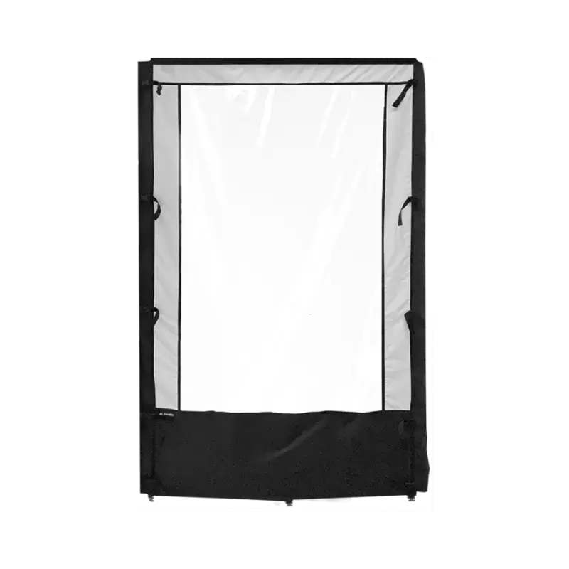 Puede instalar fácilmente el panel frontal usted mismo. El panel frontal es universal y, por lo tanto, se puede colocar en el lado delantero izquierdo o derecho. Deslice el canal del panel frontal en el riel en la parte delantera del toldo. Luego, las hebillas a presión aseguran que su panel frontal permanezca firmemente en su lugar. Puede tensarlo y asegurarlo al suelo con las correas y clavijas incluidas. Después de sus vacaciones en camping, solo tiene que guardar el panel frontal en la bolsa de almacenamiento incluida. Esto lo mantiene en las mejores condiciones posibles para sus próximas vacaciones.