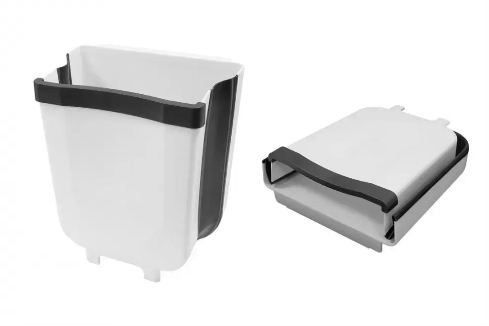 La papelera es plegable, por lo que ocupa poco espacio. ¿Tiene un contenido más grande que debería tirar? Luego, puede desplegar fácilmente el práctico bote de basura.