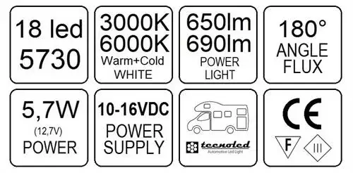 Plafon techo TecnoLed redondo 12v 18 Led de superficie caravana autocaravana camper