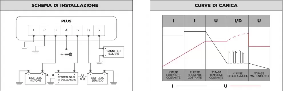 El sistema está gestionado por un microprocesador que garantiza una recarga completa en la mitad del tiempo en comparación con el alternador, o proporcionando así más autonomía durante sus paradas. Esto también es posible gracias a la optimización de las tres curvas de carga, que se pueden seleccionar mediante un interruptor que permite elegir el tipo de batería a recargar entre Litio (LiFePO4), Gel, AGM, Ácido Libre.