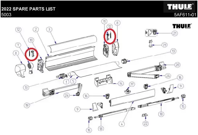 Recambio cierre toldo Thule Omnistor, derecho e izquierdo.