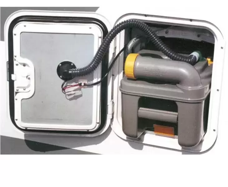 Extractor de aire especialmente desarrollado 12 V / 0,43 W. Extrae los olores desagradables y los pasa a través de un filtro de carbón activado para el exterior. El uso de productos químicos es innecesario. Fácil instalación para todos los inodoros Thetford C200 17L. Viene con todos los accesorios e instrucciones de instalación.