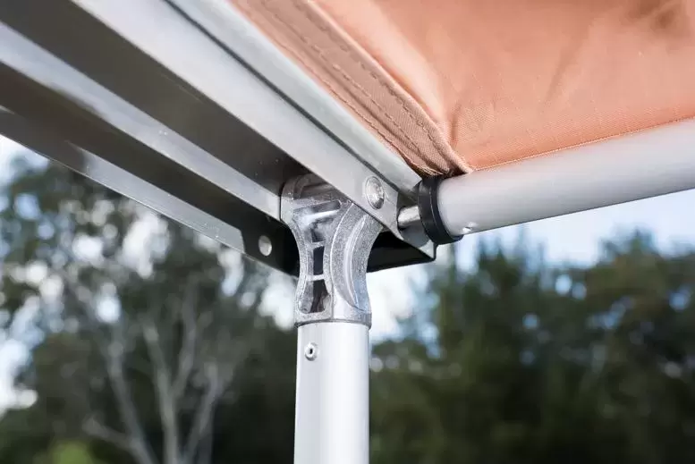 Construidos para resistir las condiciones meteorologicas, los toldos Adventure Kings cuentan con postes de aleación telescópicos anodizados, nudillos de aleación (no de plástico) y poliéster ripstop de 170 g / m2.