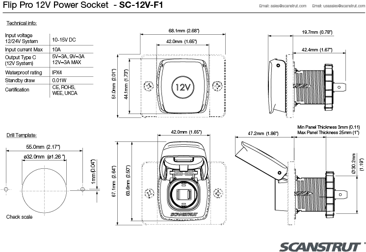 Toma hembra de 12V SCANSTRUT con tapa de protección para caravanas, autocaravanas, camper y 4x4 overland.